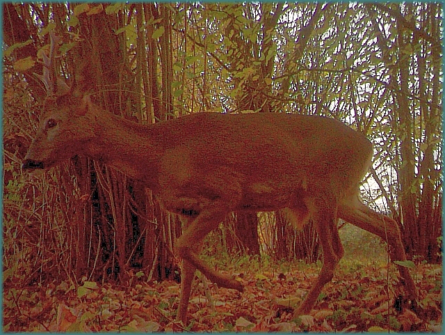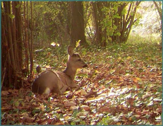 Rehbock mit Tochter und "Fasanin" im sicheren Rückzugsort: