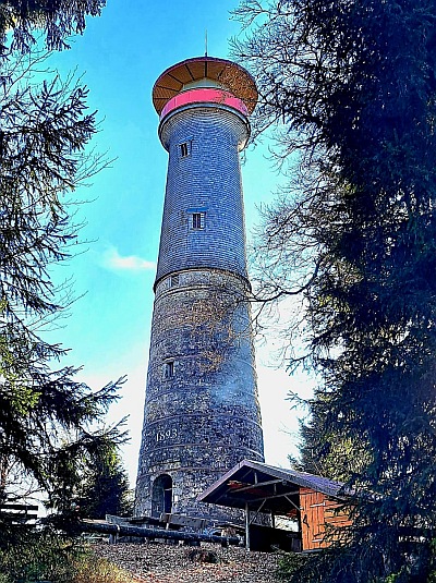 Der Hochfirst (1190m) ist der Berg über dem Titisee. In aller Munde wegen der großen Weltcup-Sprungschanze an der Nordflanke. Der 1890 schon als Stahlfachwerkkonstruktion erbaute Turm ist 25m hoch und steht auf einem Natursteinsockel. Dieser stammt noch vom Vorgänger, einem 1888 errichteten Holzturm, der 1890 einem Orkan zum Opfer fiel. Seit 1989 steht er unter Denkmalschutz. Er ist öffentlich zugänglich, den Schlüssel gibt's beim Wirt des Bergrestaurants.